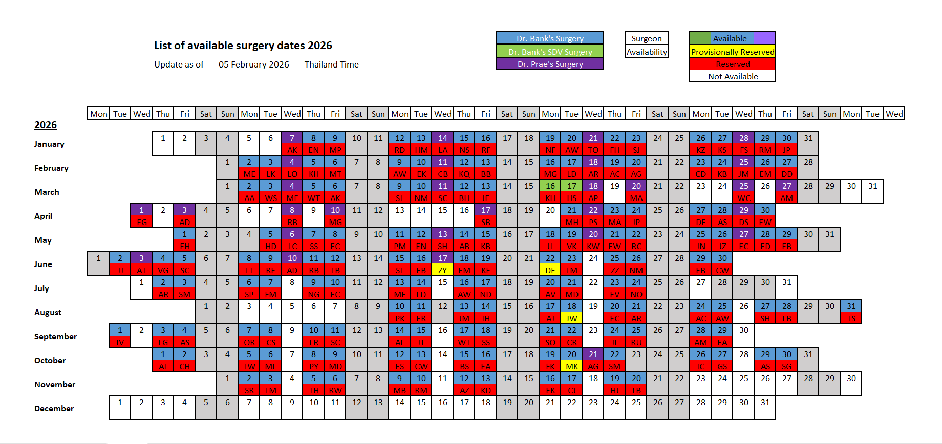 • 別な医療機関での追加手術は手術レベルに応じて一箇所7,500バーツから(予約代行+通訳+往復送迎)ご案内できます。